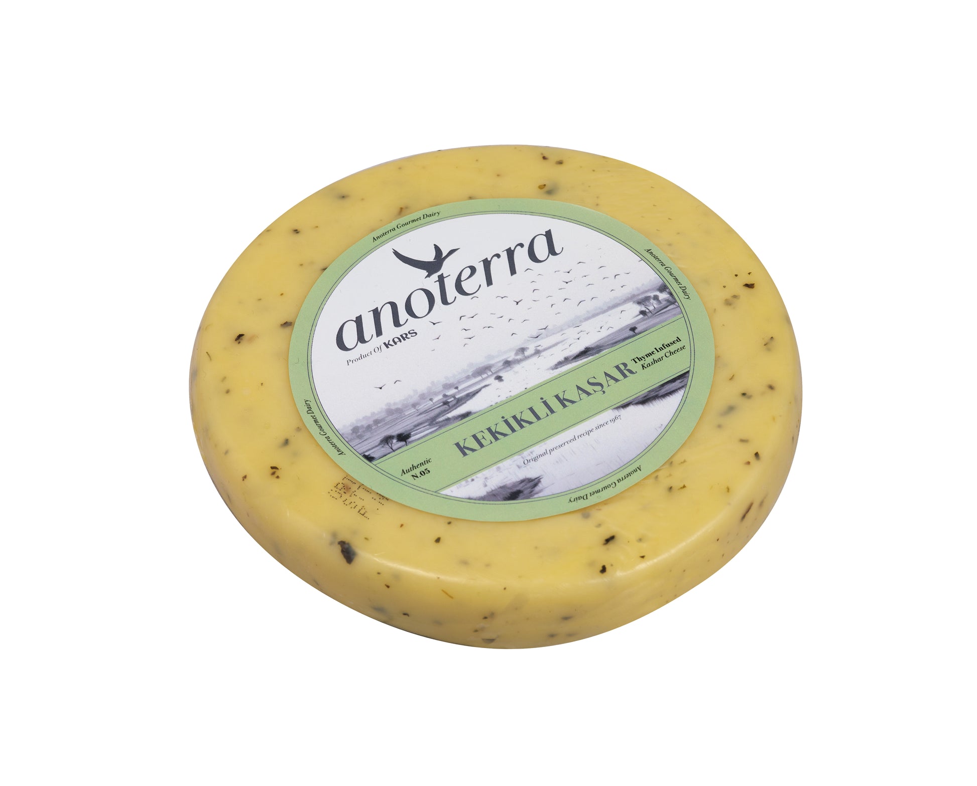 Kekikle aromalandırılmış kaşar; ferah ve baharatlı tadıyla kahvaltıya farklılık katar. Sıcak tariflerde de kekik aroması çok yakışır.